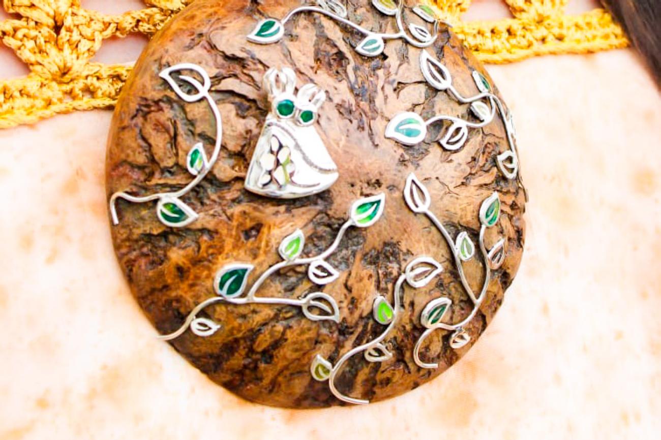Feitas em prata e ouro, com técnicas tradicionais da ourivesaria local, as peças incorporam uma variedade de gemas, como pérolas brancas, ametistas, esmeraldas, entre outras.