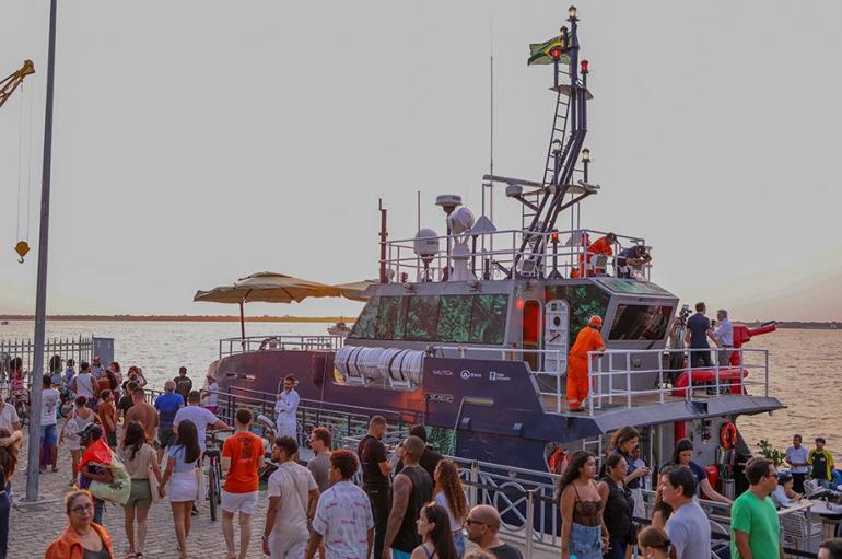 O primeiro barco-escola totalmente movido a hidrogênio verde do Brasil, está em Belém por ocasião da COP30. Ancorado na Escadinha do Cais do Porto, na Estação das Docas, o barco estará aberta à visitação gratuita neste fim de semana (dias 15 e 16 de novembro, das 13h às 19h).